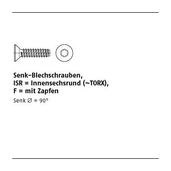 500 Stück ISO 14586 Stahl geh. Form F galvanisch verzinkt Senkkopf Blechschrauben mit Zapfen mit Innensechsrund (TORX) 3,9x32 F mm